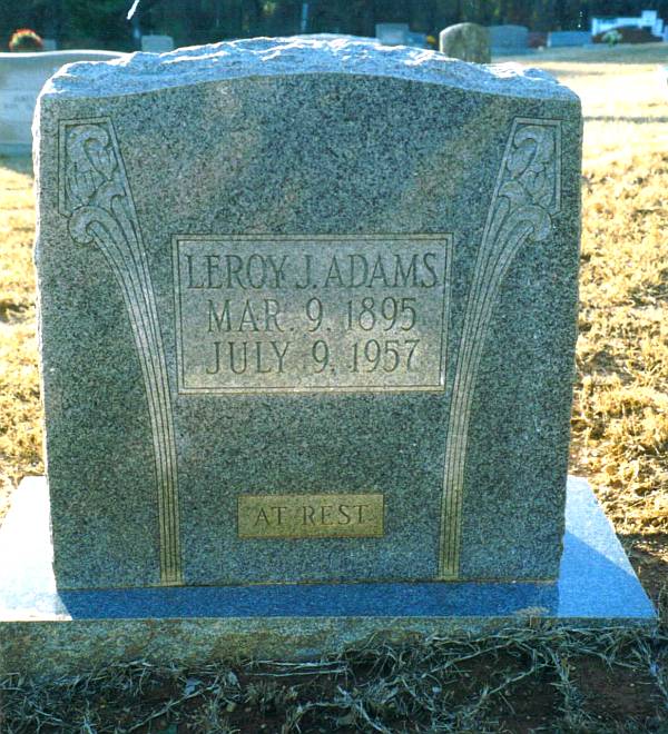 | Adams, Leroy J. | 9 Mar. 1895 | 9 July 1957 | "AT REST" [h/o Betty Duvall - her first husband was James D. Wear. She is buried close to James in Hickory Springs Cem.] | CM & RW |
