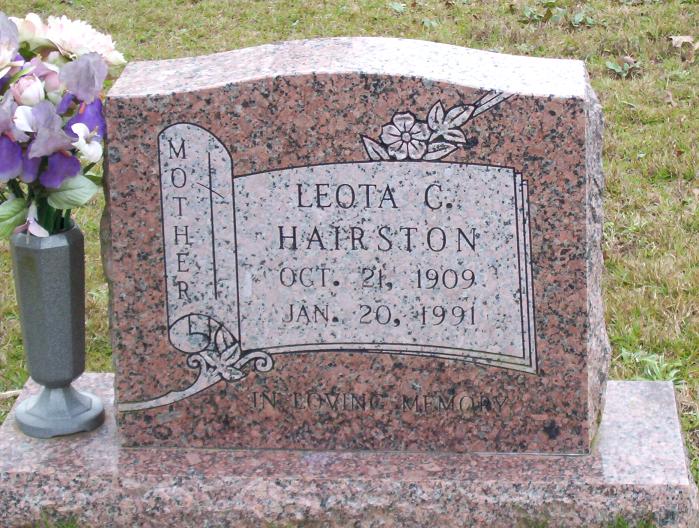 | Hairston, Leota C. | Oct 21, 1909 | Jan 20, 19915 | “MOTHER" "IN LOVING MEMORY" | PC |