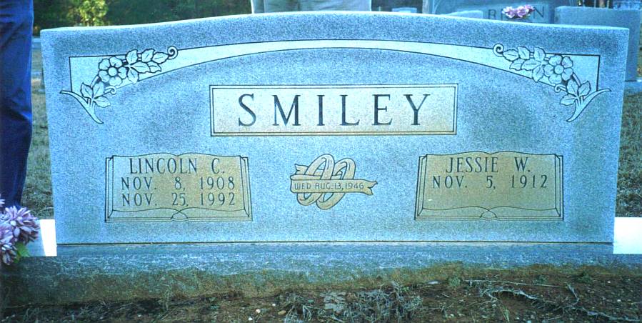| Smiley, Lincoln C. | 8 Nov 1908 | 25 Nov. 1992 | Double Stone with Jessie W. Smiley "WED AUG. 13, 1946" | CM & RW |