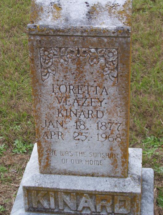 | Kinard, Loretta Veazey | Jan 18, 1877 | Apr 25, 1968 | “SHE WAS THE SUNSHINE OF OUR HOME” | PC |