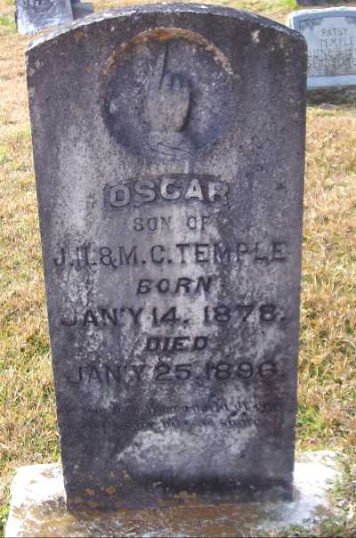 | Temple, Oscar | Jan 14, 1878 | Jan 25, 1896 | s/o J. T. & M. C. Temple | PC |