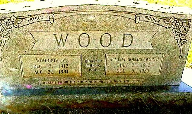 | Wood, Almeda Hollingsworth | 7-21-1922 | 10-5-1983 | "MOTHER" "MARRIED MAR 19, 1938" "ABSENT FROM THE BODY AND PRESENT WITH THE LORD" Double Stone with Woodrow W. Wood | NJ |