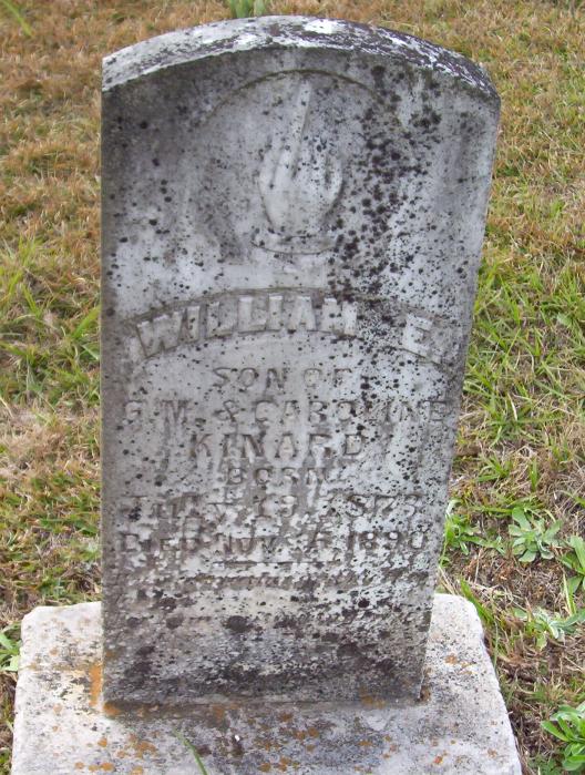 | Kinard, William E. | July 19, 1873 | Nov 15, 1890 | "SON OF G. M. & CAROLINE KINARD" [s/o G. M Kinard & Caroline C. Brown] | PC & CM |