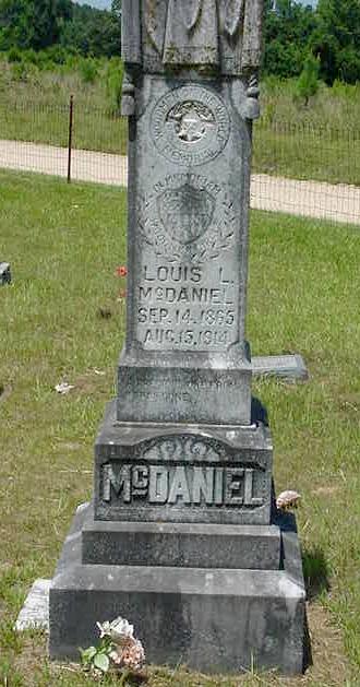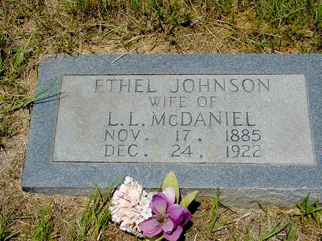 | McDaniel, Ethel | 17 Nov 1885 | 24 Dec 1922 | "WIFE OF L. L. McDANIEL" Her headstone is adjacent to her husband's memorial stone | JM |