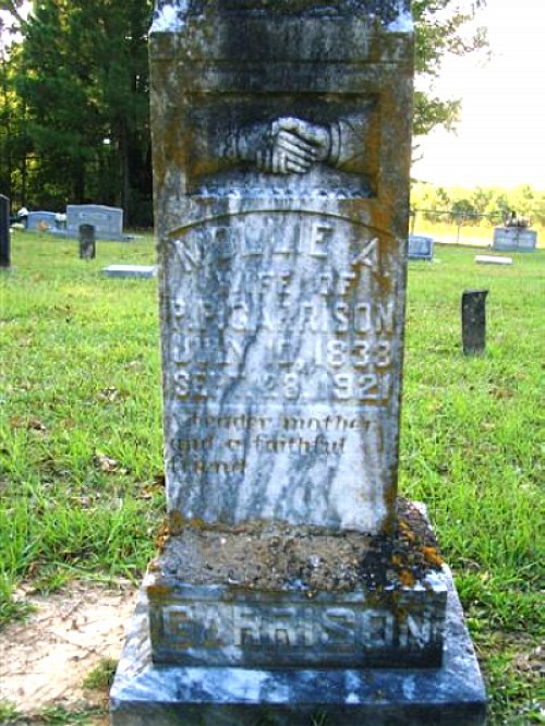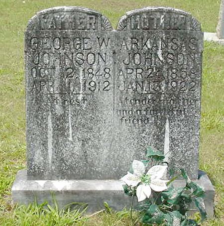 | Johnson, Arkansas | 24 Apr 1858 | 13 Jan 1922 | Double Stone with George W. Johnson "MOTHER" "A tender mother and a faithful friend" [George & Arkansas are my great-grandparents. JM] | DP & JM |