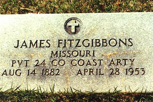 | Fitzgibbons, James | Aug. 14, 1882 | Apr. 28, 1953 | "Missouri - Pvt 24 Co Coast Arty" | DP |