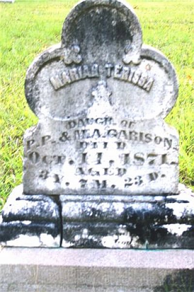 | Garrison, Mariah Terissa - NEW PHOTO 8-3-2006 | [2-21-1868] | 10-11-1871 | "DAUGH. OF P. P. & M. A. GARISON" "AGED 3 Y. 7 M. 23 D." | TG |