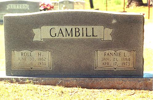 | Gambill, Roll H. [Raleigh Herbert] | June 30, 1882 | Aug. 6, 1934 | [double stone with Fannie L. Gambill] | DP |