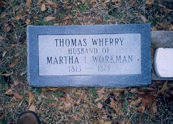 | Wherry, Thomas - NEW PHOTO 8-4-2006 | 1813 | 1874 | "HUSBAND OF MARTHA L. WORKMAN" [Daughter Martha J. Neely] | CM |