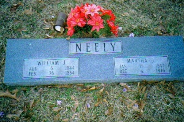 | Neely, William J. [Jackson] - NEW PHOTO 8-4-2006 | 8-6-1844 | 2-26-1884 | Double Stone with Martha J. Wherry Neely [s/o Wiliam Henry Neely & Frances Alberta Schooley; Children: Marshall H, Dolly, Walter H, William T, Mary B, Henry S. Cora, Ida A, & Charles J.] | TG & CM |