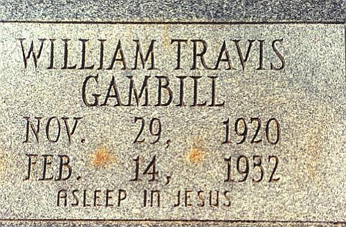 | Gambill, William Travis | Nov. 29, 1920 | Feb. 14, 1932 | "Asleep in Jesus" | DP |