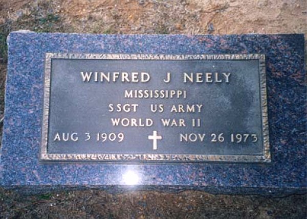 | Neely, Winfred J. - NEW PHOTO 8-4-2006 | 3 Aug. 1909 | 26 Nov. 1973 | Military Marker "MISSISSIPPI SSGT US ARMY WORLD WAR II" Double Stone with Kathleen A. Neely [s/o Charles J. & Helen Neely] | CM |