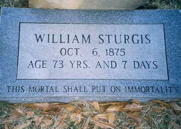 | Sturgis, William - NEW PHOTO 8-4-2006 | 9-30-1802 | 10-6-1875 | "AGE 73 YRS. AND 7 DAYS" New Headstone Photo [father of Mollie A. Garrison] | TG & CM |
