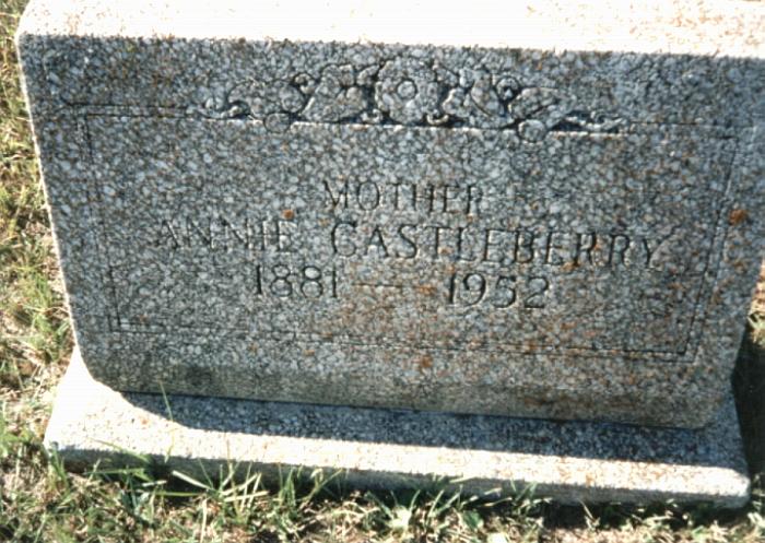 | Castleberry, Annie | 1881 | 1952 | "MOTHER" [Mrs. Steadman; w/o Joel Castleberry] | JB |