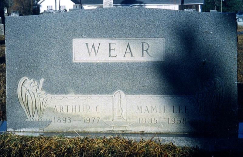 | Wear, Arthur C. | 1893 | 1977 | [s/o Newton Cook Wear & Julia Ann Singer Wear; h/o 1) Jewel A. Temple Wear, two children, Geraldine Bachtold & William Terrell; 2) Mamie Lee Morman Wear, no children] | CM |