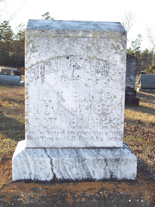 | Baker, Cindarilla - NEW WITH PHOTO 3-6-2009 | Nov 14, 1851 | Oct 19, 1923 | "WIFE OF W. T. BAKER" "It was hard to give thee up, but Thy will, O God, be done" | CeM |
