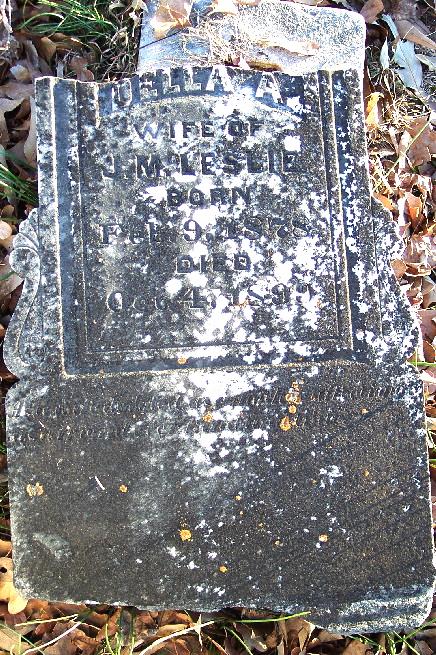 | Leslie, Della A. - NEW WITH PHOTO 3-6-2009 | Feb 9, 1878 | Oct 4, 1899 | "WIFE OF J. M. LESLIE" | BB & CeM |