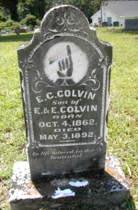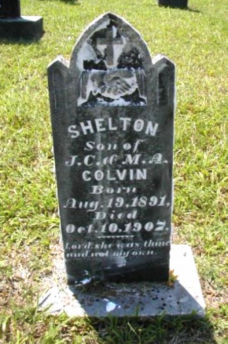 | Colvin, Shelton | 8/19/1891 | 10/10/1907 | "Son of J. C. & M. A. COLVIN" "Lord, she was thine and not my own." [s/o John C. & Martha Ann Colvin] | RC & AR |