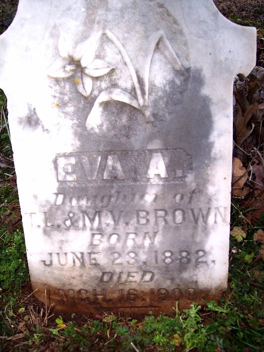 | Brown, Eva A. - NEW WITH PHOTO 3-6-2009 | June 23, 1882 | Mch 16, 1900 | "Daughter of T. L. & M. V. BROWN" | CeM |
