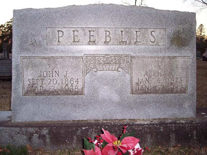 | Peebles, John J. - NEW WITH PHOTO 3-6-2009 | Sept 20, 1864 | Mar 2, 1938 | Double Stone with Alpha O. Peebles | CeM |