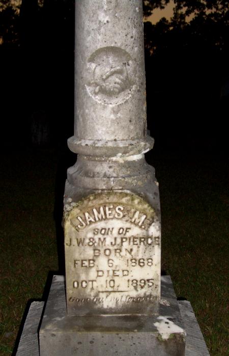 | Pierce, James M. | Feb 6, 1868 | Oct 10, 1895 | "SON OF J. W. & M. J. PIERCE" | TG |