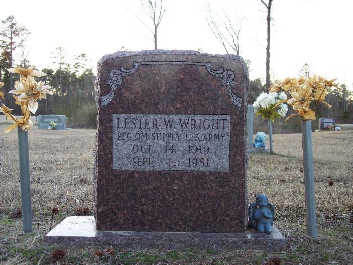 | Wright, Lester W. - NEW WITH PHOTO 3-6-2009 | Oct 14, 1919 | Sept 1, 1951 | "PFC QM SUPPLY US ARMY" | CeM |