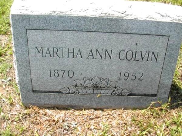| Colvin, Martha Ann | 1870 | 1952 | [Born 4/13/1870; Died 12/15/1952; w/o John C. Colvin] | RC, CM & AR |