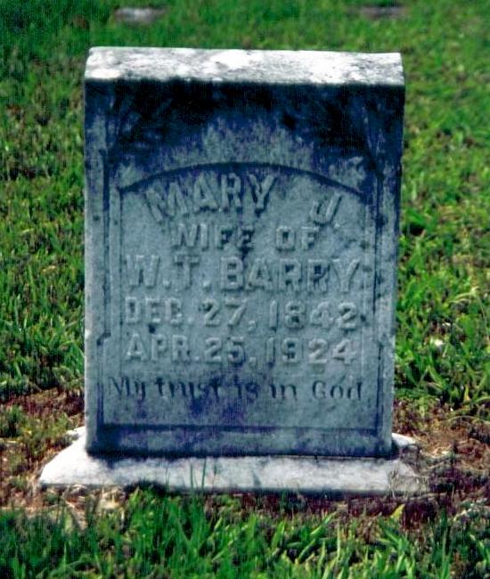 | Barry, Mary J. | Dec 27, 1842 | April 25, 1924 | "WIFE OF W. T. BARRY" "My trust is in God." | TG |