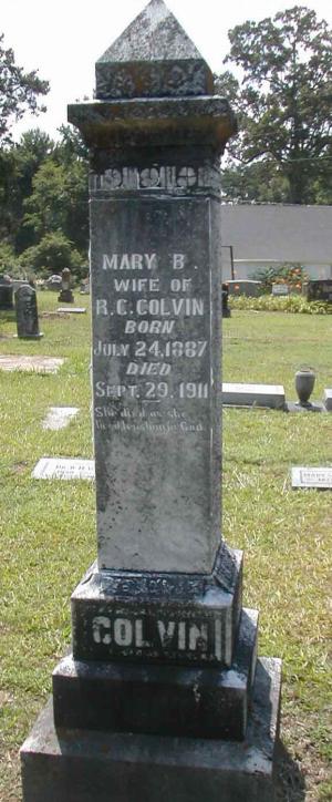 | Colvin, Mary B. [Hall] | 7/24/1887 | 9/29/1911 | "WIFE OF R. [Rufus] C. COLVIN" | RC & AR |