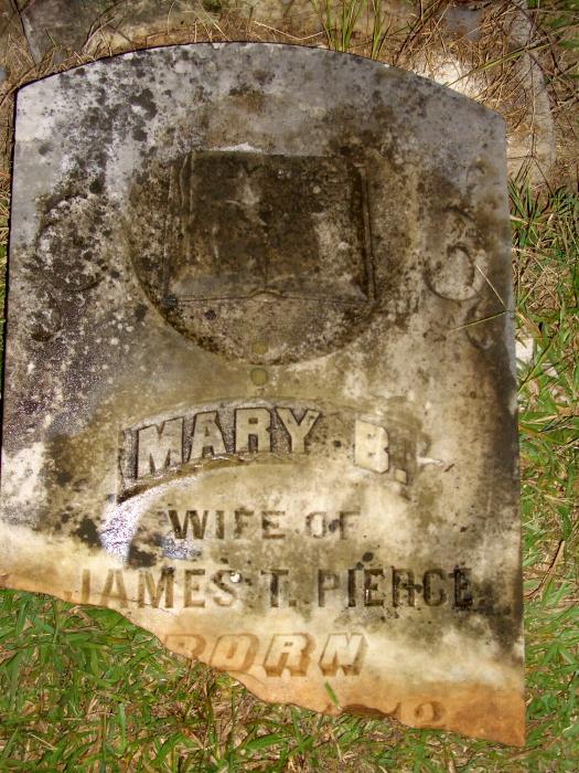 | Pierce, Mary B. | Sept. 23, 1812 | Sept. 5, 1884 | "WIFE OF JAMES T. PIERCE" Headstone in 1997 | TG |