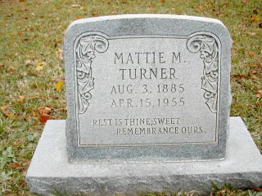 | Turner, Mattie M. | 8/3/1885 | 4/15/1955 | "REST IS THINE, SWEET REMEMBRANCE OURS" | AR |
