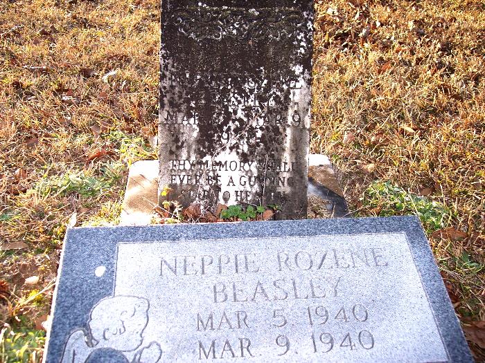 | Beasley, Neppie Rozene - NEW WITH PHOTO 3-6-2009 | Mar 5, 1940 | Mar 9, 1940 | Two Stones; Older Stone says "YOUR MEMORY SHALL EVER BE A GUIDING STAR TO HEAVEN" | CeM |