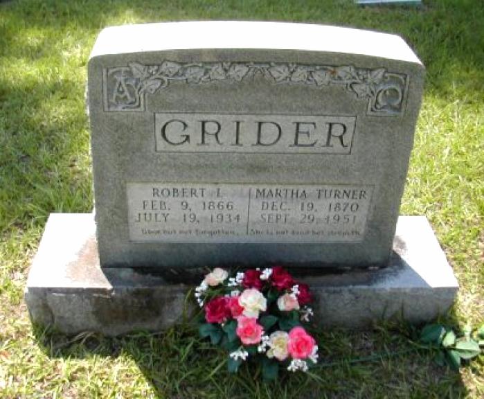 | Grider, Martha Turner | 12/19/1870 | 9/29/1951 | Double Stone with Robert L. Grider "She is not dead but sleepeth" [2nd w/o Robert L. Grider] | AR |