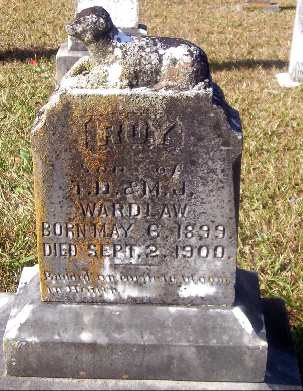 | Wardlaw, Roy | May 6, 1899 | Sep 2, 1900 | "Son of T. D. & M. J. WARDLAW" "Budded on earth to bloom in Heaven" | PC |