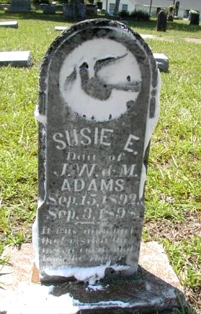 | Adams, Susie E. | 9/15/1892 | 9/3/1898 | "Dau. of J. W. & M.Adams" [d/o Jesse Warren & Martha Colvin Adams from Farmville Community] | AR |