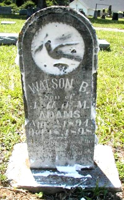 | Adams, Watson B. | 4/2/1894 | 10/18/1898 | "Son of J. W. & M. Adams" [s/o Jesse Warren & Martha Colvin Adams from Farmville Community] | AR |
