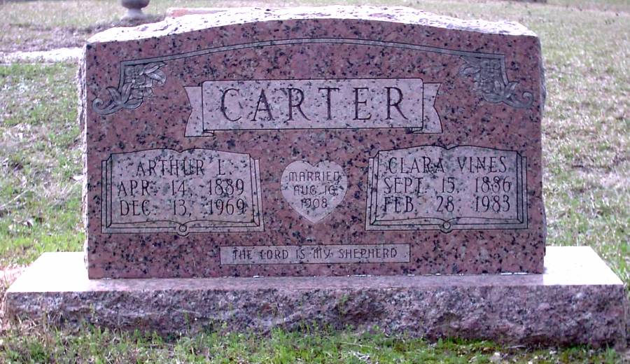 | Carter, Arthur L. - NEW PHOTO 6-28-2007 | 4-14-1889 | 12-13-1969 | Double Stone with Clara Vines Carter "MARRIED AUG. 10, 1908" "THE LORD IS MY SHEPHERD" | NJ |