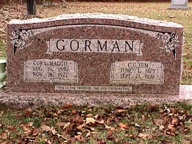 | Gorman, Cora Maggie | Aug. 19, 1880 | Nov. 28, 1977 | Double Stone with C. C. "Lum" Gorman "THIS IS THE PROMISE, THE LIFE EVERLASTING" | NJ |