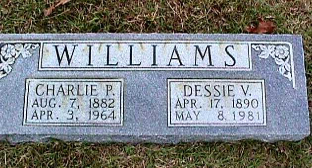 | Williams, Charlie P. | Aug. 7, 1882 | Apr. 3, 1964 | Double Stone with Dessie V. Williams | NJ |
