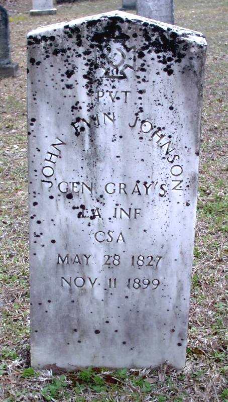 | Johnson, John Evin - NEW PHOTO 6-29-2007 | May 28, 1827 | Nov. 11, 1899 | "PVT" "GEN GRAY'S LA INF" "CSA" Southern Cross of Honor emblem | BB & NJ |