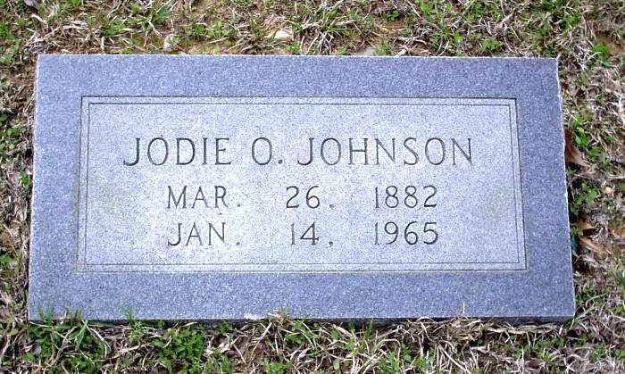| Johnson, Jodie O. - NEW PHOTOS 7-7-2007 | Mar. 26, 1882 | Jan. 14, 1965 | Double Headstone with James F. Johnson [full name Josephine Ophelia Gorman; d/o Joseph Van Gorman & Sarah Elizabeth "Sallie" Russell; born in Bradley Co., AR.; w/o James F. (Franklin?) Johnson, married March 18, 1912, Bradley Co., AR.] | BB & NJ |