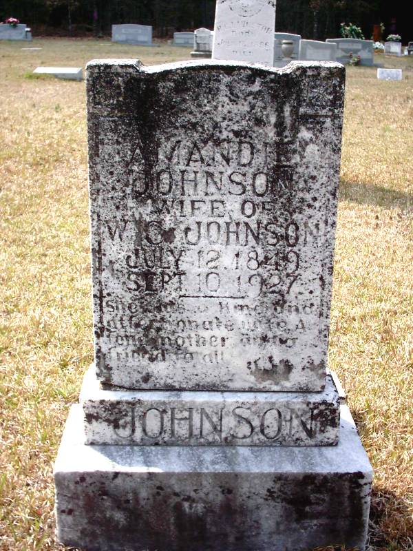 | Johnson, Amandie - NEW PHOTO 7-7-2007 | July 12, 1849 | Sept.10, 1927 | "WIFE OF W. C. JOHNSON" "She was a kind and affectionate wife, A fond mother and friend to all" | BB & NJ |