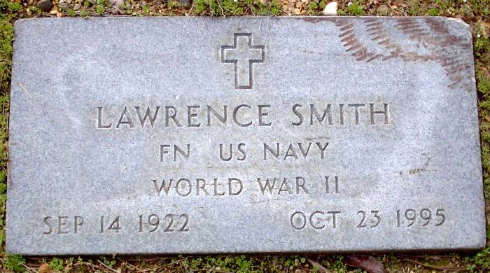 | Smith, Lawrence - NEW PHOTOS 6-29-2007 | 9-14-1922 | 10-23-1995 | Military Stone "FN US NAVY" "WORLD WAR II" Christian Cross emblem | NJ |
