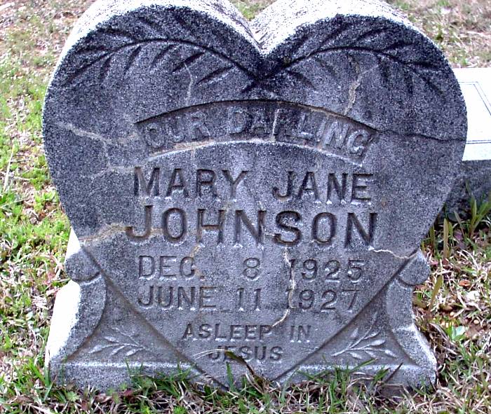 | Johnson, Mary Jane - NEW PHOTO 6-29-2007 | Dec. 8, 1925 | June 11, 1927 | "OUR DARLING" "ASLEEP IN JESUS" | BB & NJ |