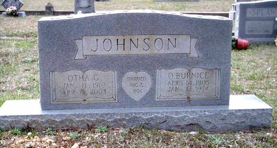 | Johnson , O. Burnice - NEW PHOTO 7-7-2007 | 4-14-1905 | 1-13-1974 | Double Stone with Otha G. Johnson "MARRIED AUG. 7, 1926" | BB & NJ |