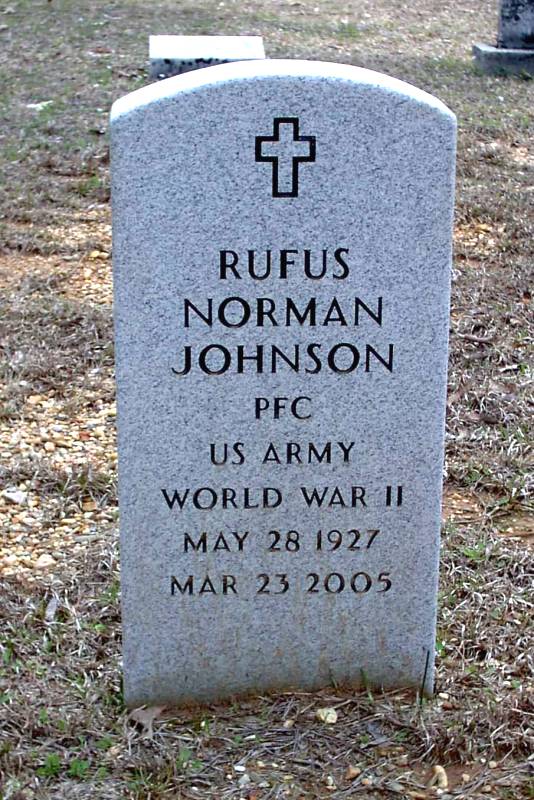 | Johnson, Rufus Norman - NEW PHOTO 7-7-2007 | 5-28-1927 | 3-23-2005 | "PFC US ARMY" "WORLD WAR II" Christian cross emblem | NJ |