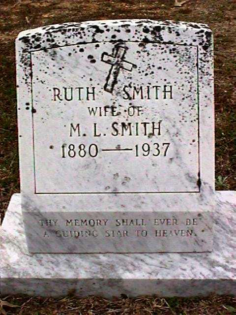 | Smith, Ruth | 1880 | 1937 | "WIFE OF M. L. SMITH" "THY MEMORY SHALL EVER BE A GUIDING STAR TO HEAVEN" | NJ |