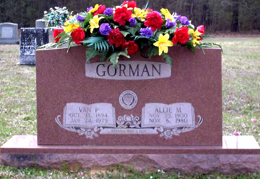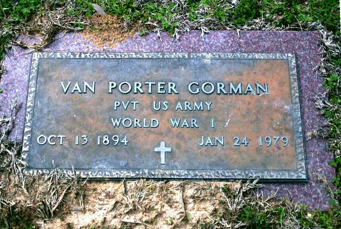 | Gorman, Van P. - NEW PHOTO 7-7-2007 | 10-13-1894 | 1-24-1979 | Double Stone with Allie M. Gorman "MARRIED MAY 1, 1920" "IN MEMORIAM SUPREME FOREST WOODMEN ORDER" Also has a Military Stone "VAN PORTER GORMAN" "PVT US ARMY" "WORLD WAR I" Christian Cross emblem | NJ |