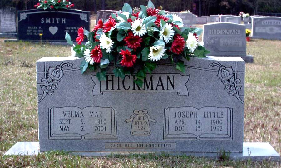 | Hickman, Velma Mae - NEW PHOTO 6-29-2007 | 9-09-1910 | 5-02-2001 | Double Stone with Joseph Little Hickman "WED JAN. 9, 1927" "GONE BUI NOT FORGOTTEN" | NJ |