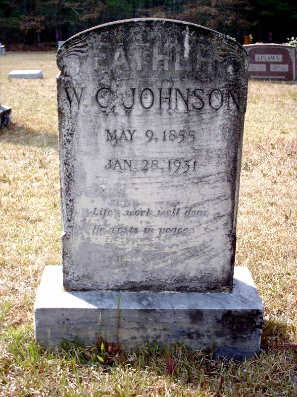 | Johnson, W. C. - NEW PHOTO 7-7-2007 | May 9, 1855 | Jan. 28, 1931 | "FATHER" "Life's work well done, He rests in peace." | BB & NJ |